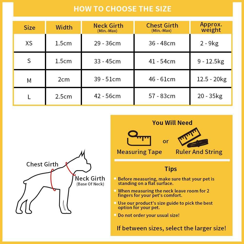 In addition to the fixed size options, you can adjust the size further, no matter what kind of body your pet is, it can perfectly fit.