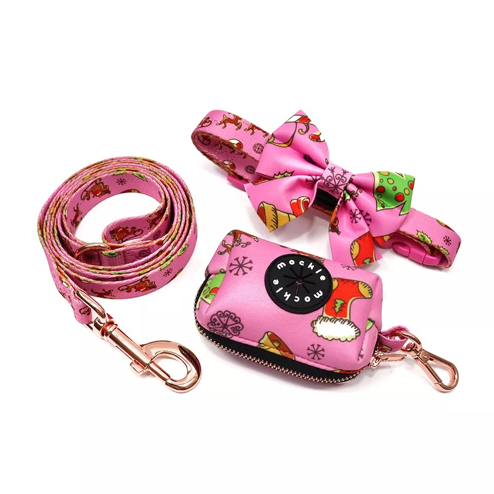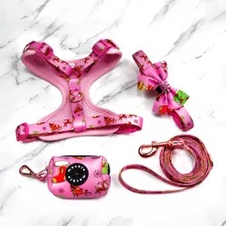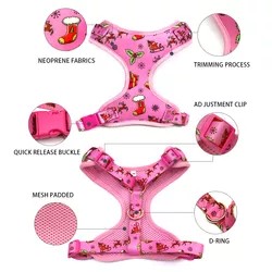 Neoprene fabric dog harness, dog collar, dog leash set,Christmas styles,can be customized.