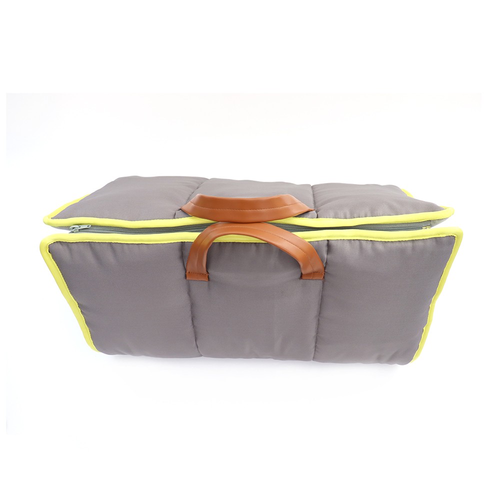 The outer layer is made of gabardine fabric, which is waterproof and breathable, while the inner layer is made of soft fleece fabric, which is is warm and comfortable,nylon edges and PU handles make it more durable.