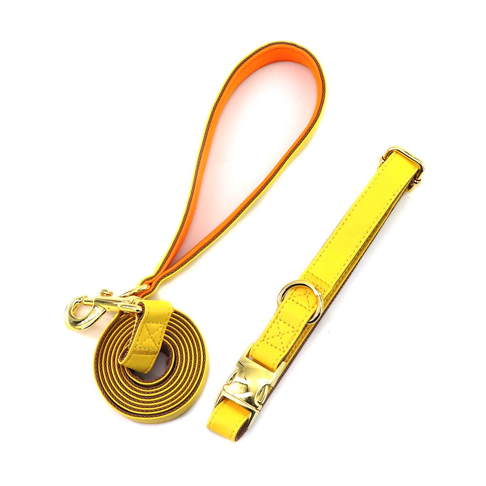 This dog Harness is made of colorful PU leather with beautiful metal clasps. It is waterproof, dirt proof and comfortable to handle. The dog's back feels very comfortable.