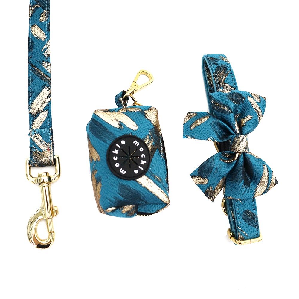 Blue Soft Soft Plush Lining Fabric Pet Leash And Harness Set with Hot stamping process,All the upper hardware can be customized color and collocation