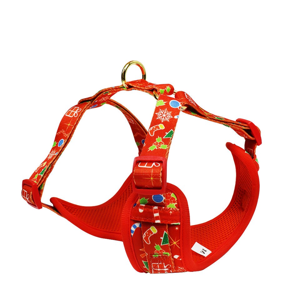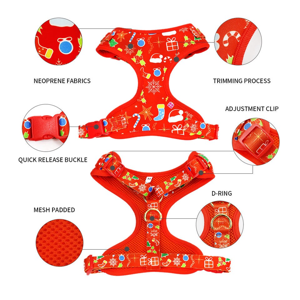 Christmas style dog harness/pet harness set,breathable and comfortable,holiday essentials,can be customized.