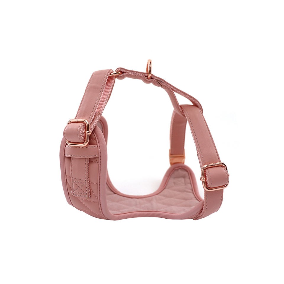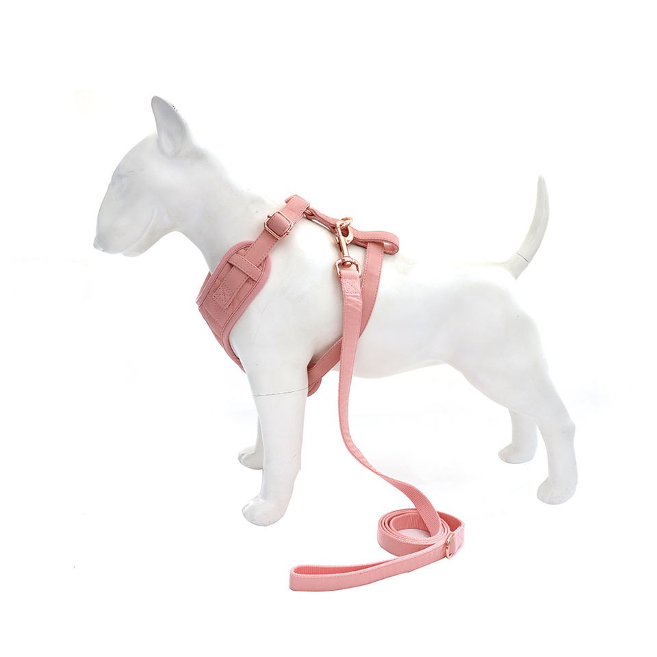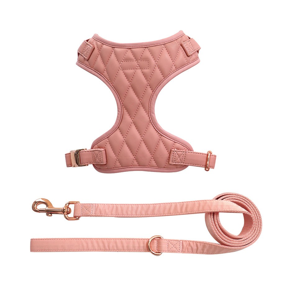 PU leather is matched with beautiful metal buckle. This product includes leather Pet Dog Harness Set and vest traction rope suit, which is waterproof and dirt resistant and suitable for dogs in summer.